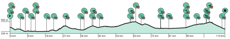 De rit met de meeste hoogtemeters (3.010) wordt opgespaard voor de laatste dag.